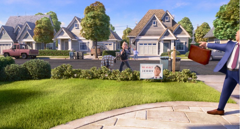 ส่วนฉากที่เกี่ยวกับนายกเทศมนตรีเจอร์รี่ก็มี Easter Eggs ให้ตามเก็บ ทั้งผ้าห่มคลุมรถเข็นเด็กที่เดินผ่านหน้าบ้านคุณแม่ของเจอร์รี่ ซึ่งเป็น “ลายผ้า Tartan” ที่ออกแบบในธีมของภาพยนตร์เรื่อง Brave และในฉากที่เผยข้อมูลข่าวบนโลกออนไลน์ ยังปรากฏภาพของ “Mr. Mittens” จากภาพยนตร์เรื่อง Soul และ “Gamma” จากภาพยนตร์เรื่อง Up อยู่ข้างบทความ “17 Mayors We’re Obsessed With” ด้วย